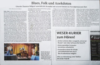 „...Seine filigrane Gitarrentechnik, seine warme, bluesige Stimme und seine humorvoll moderierten Ansagen zu den Songs sorgten für eine fast schon familiäre Atmosphäre - ein Musiker zum Anfassen…